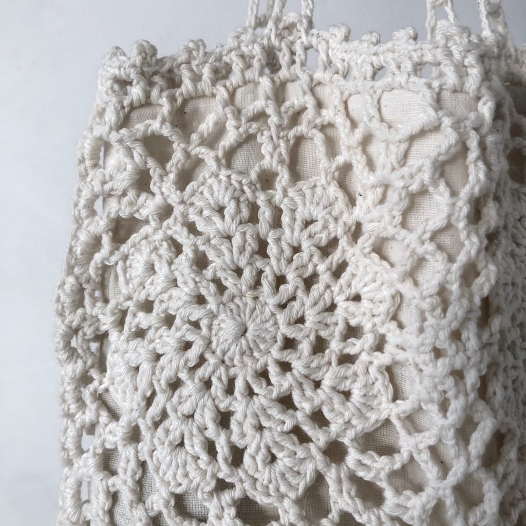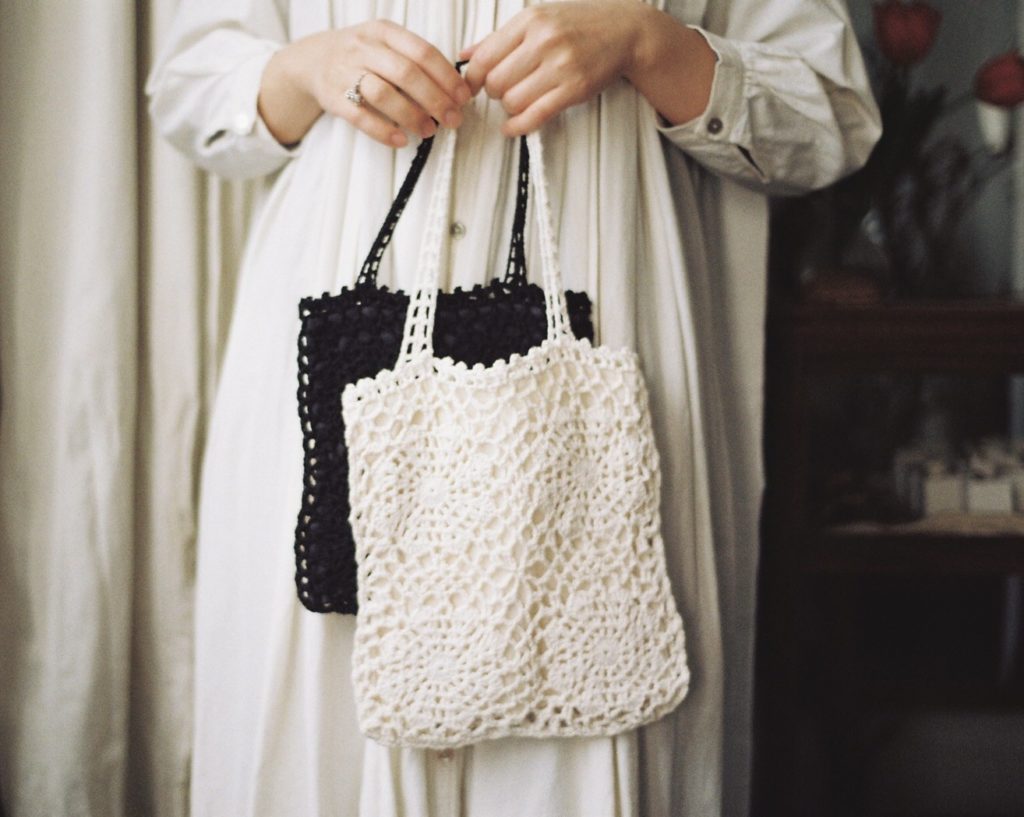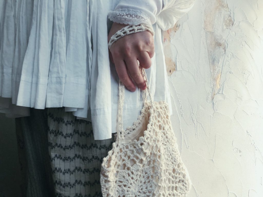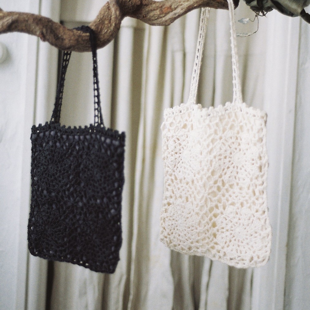 手仕事shioriより。手編みのレースバッグが届いております。