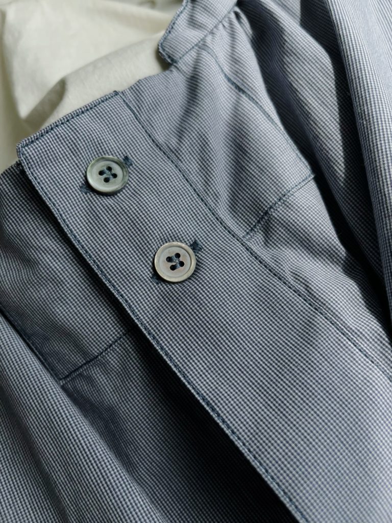 釦は黒蝶貝の釦にビンテージ加工がされたもの。