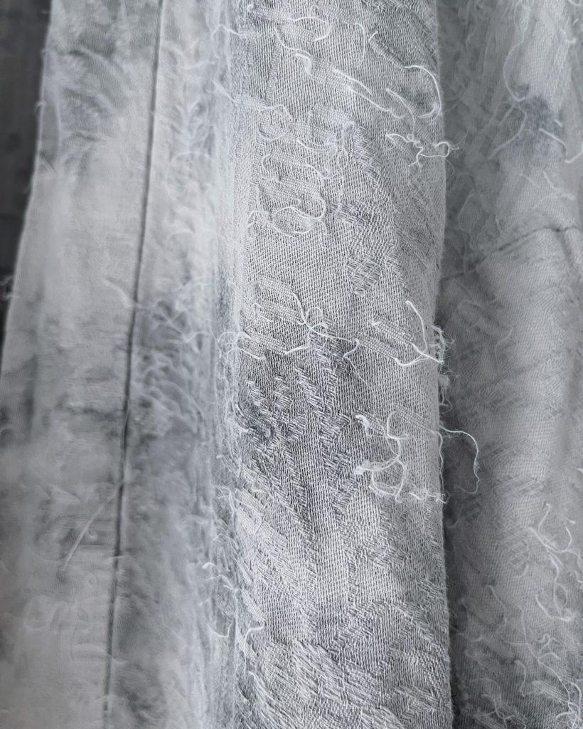 タテ糸に綿、ヨコ糸に麻を使用し植物柄を織り込んだ