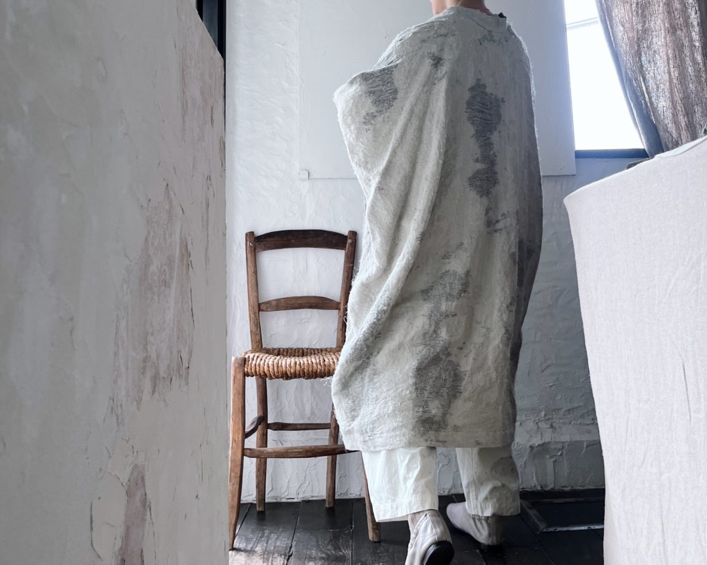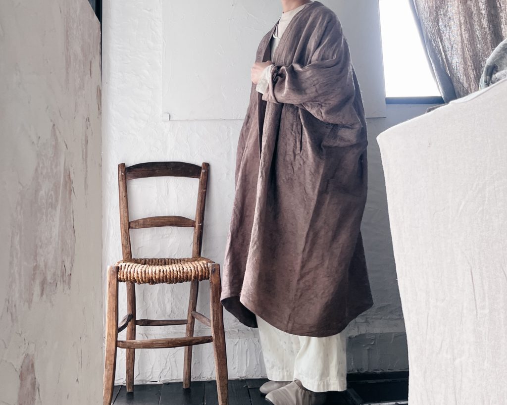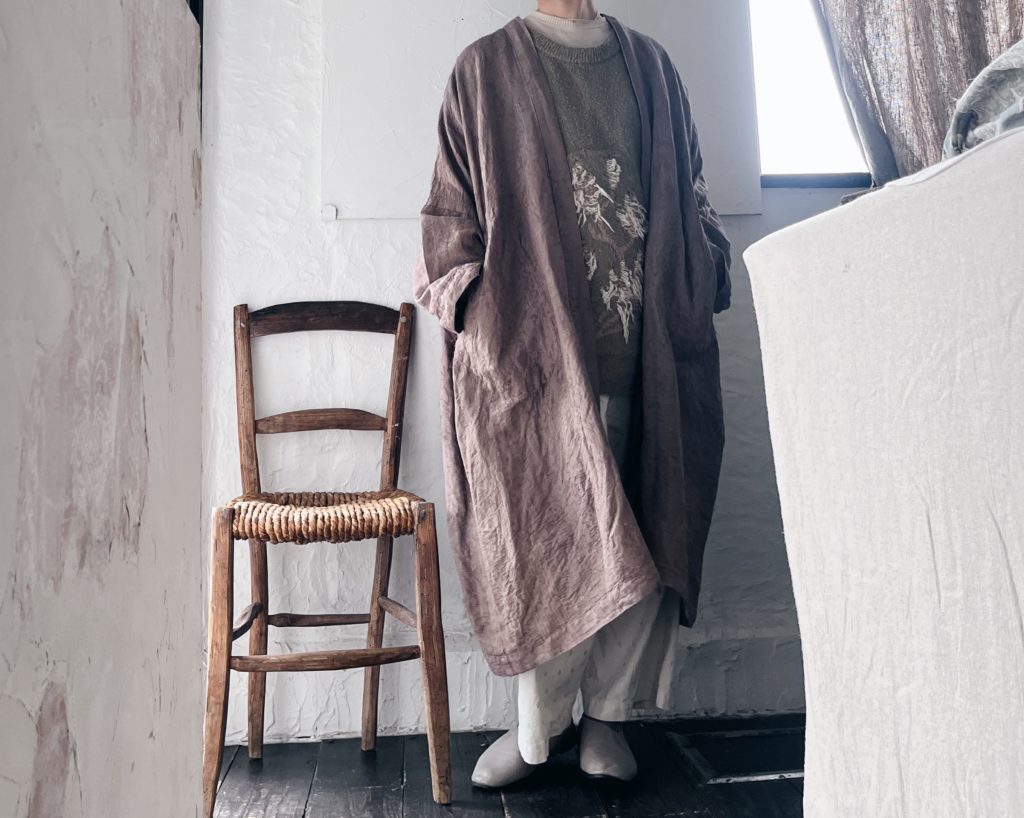 裏地のない通年素材の軽やかな羽織りは