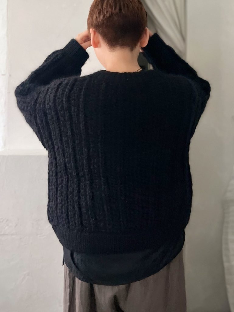 ニットは素材の特性上斜行します。とても柔らかく編んでいるため、