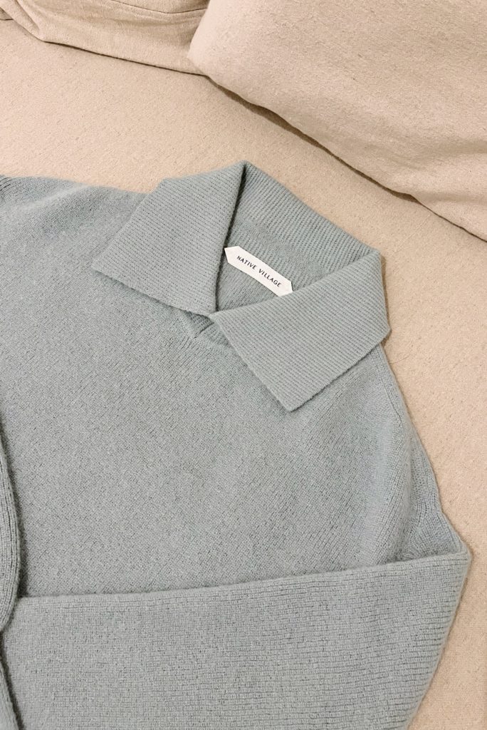 シンプルなのに絵になる、洗練された空気感のニット。