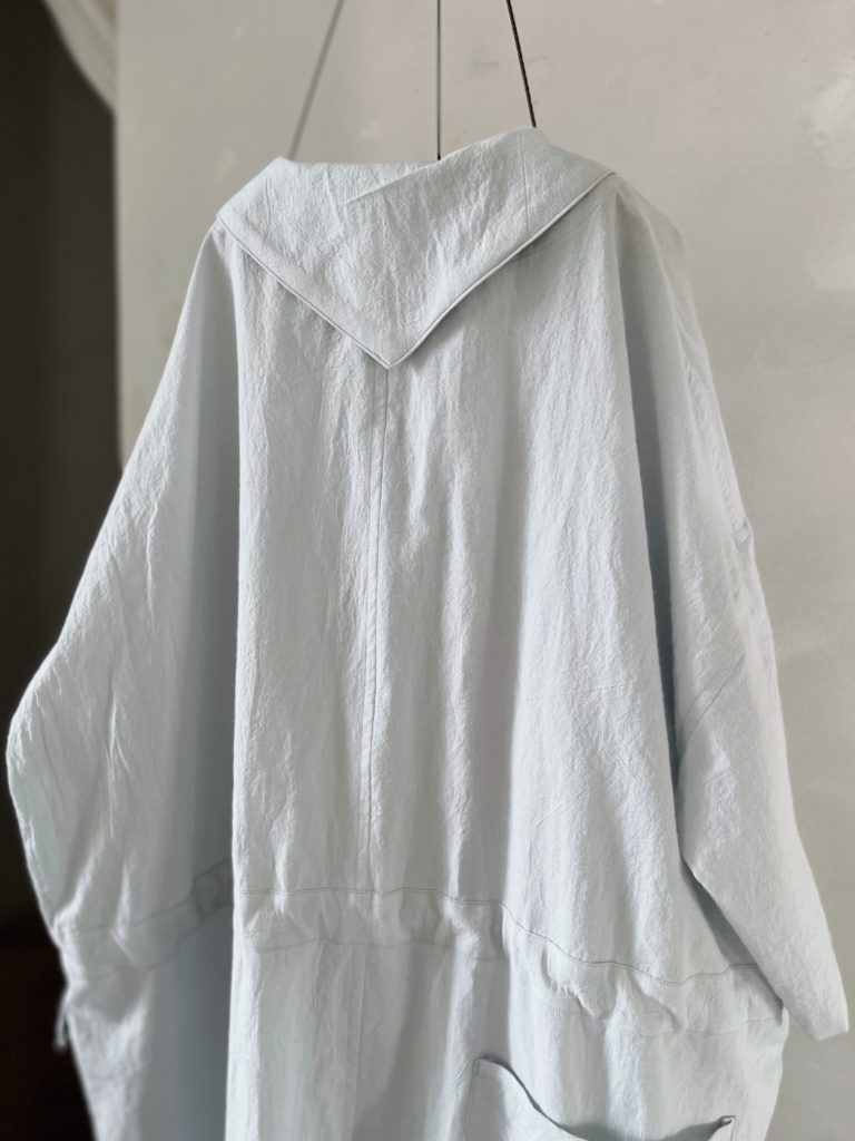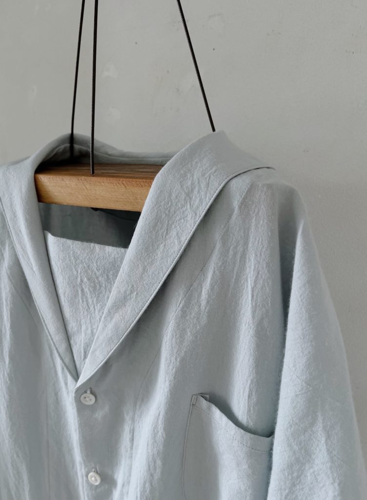 後ろはショールを巻いたようなイメージで小さな三角襟を。
